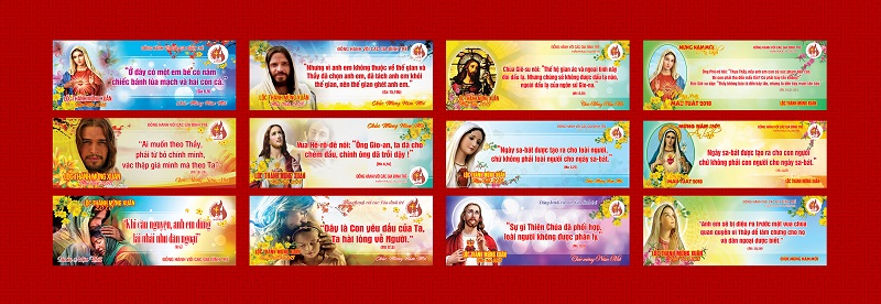 Bộ này tuy có 15 mẫu khác nhau nhưng có thể thay thế các Câu Lời Chúa để nội dung được phong phú và ít bị trùng lặp trong cộng đoàn. Hơn nữa, các file thiết kế PSD có đầy đủ layer nên có thể dễ dàng thêm tên Giáo xứ hoặc các nội dung khác. Do đó, nếu quý độc giả có nhu cầu mua file thiết kế, mình sẵn lòng giúp thay thế các câu Lời Chúa hoặc các nội dung theo yêu cầu.